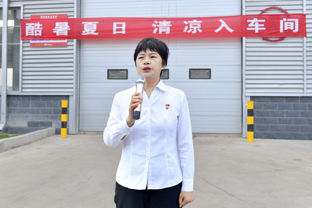 滚滚热浪,暑气逼人。在mg冰球突破股份车间生产一线,总有一些人因责任而坚守,因梦想而执着。“战时状态”下的他们坚守岗位,艰苦奋斗,汗流浃背时正好迎来一丝丝清凉和一份份关怀。6月26日上午,mg冰球突破股份组织开展“酷暑夏日、清凉入车间”活动,常务副总经理谢保华、副总经理马辉艳等领导为一线工人送来凉茶、西瓜等清凉解暑物资。