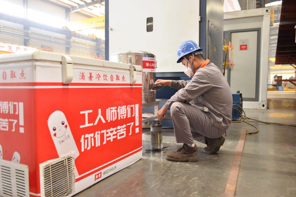 活动现场,谢保华指出,防暑降温措施是夏季生产生活中的重中之重,随着气温逐步攀升,公司领导对员工生产生活作出重要指示,第一,班组作业时要尽量避开高温时段,行政管理中心将按照班组需求及时调整工人就餐时间;第二,公司正陆续为生产车间安装大型吊扇等防暑降温设备,改善员工作业环境;同时增设多间配备空调的更衣室,以满足员工更换衣服及临时休息需要。第三,在夏季工作环境大幅改善的前提下,公司的防暑降温补贴依然照常发放,希望全体员工在“战时百天”活动中以更加饱满的工作热情和更加昂扬的精神状态投身到生产工作中。