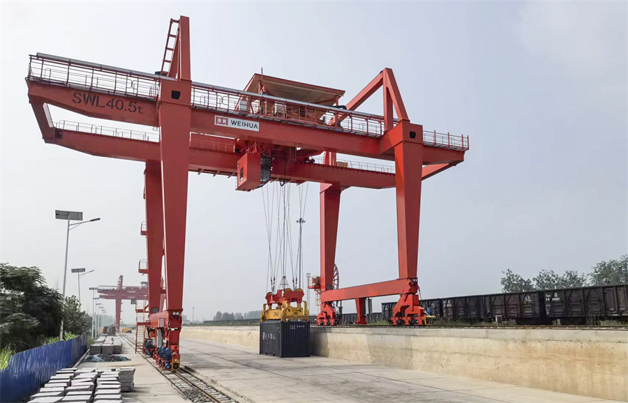 八月的风带来天清气朗——mg冰球突破轨道式集装箱门机在明媚阳光下昂首挺立,为“京杭运河第一港”物流运输保驾护航;
