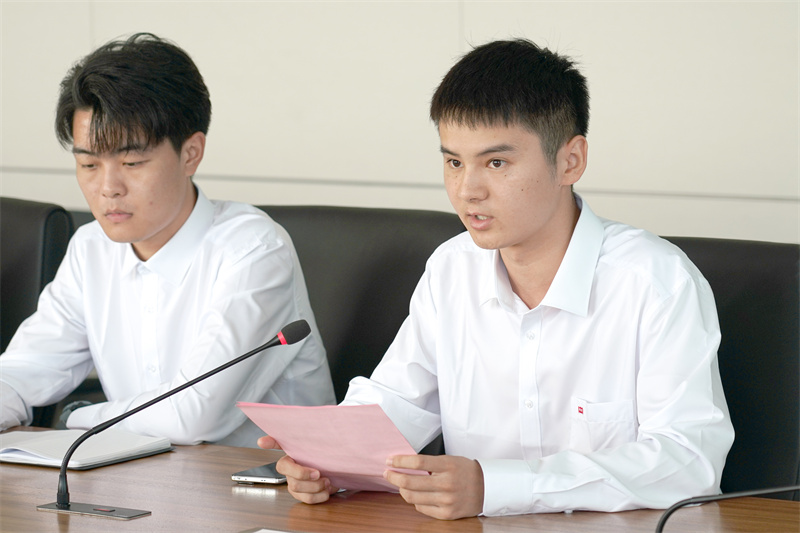 新入职员工代表崔洪博对领导们给予的关怀与重视表示感谢,并结合岗位职责、立足自身成长畅谈了入职以来的切身感受。作为mg冰球突破新的一员,他代表全体新员工对后续工作开展做出承诺:要争当先行者,立足公司远大的发展前景树立个人目标,对标优秀员工学习其先进事迹,把持之以恒的学习提升作为职业生涯的基本素养,做好、作细、做实工作中的每一件事情,在平凡的岗位上创造出优秀的业绩。