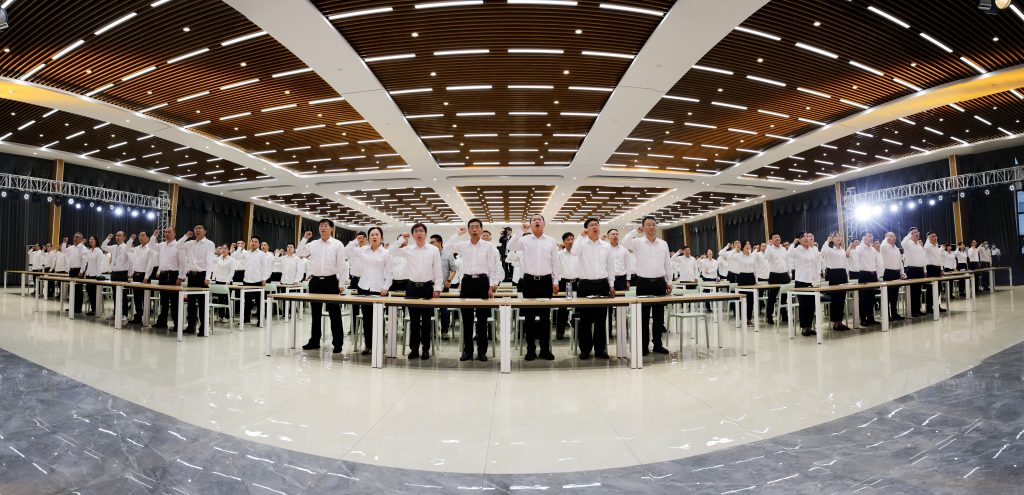 龙宏欣表示,截至目前2021年订单相比往年实现翻倍,公司又恰逢上市关键期,形势异常严峻。“咬紧牙关,突出重围”是mg冰球突破人的必然选择;全体中高层领导要以身作则,以高度的责任心和使命感立足本职工作,敢于担当,切实履行主体责任;全体mg冰球突破人要保持充分的热情和激情,勇于拼搏,艰苦奋斗,确保全面打赢这场攻坚战! 在常务副总经理谢保华的带领下,全体参会人员举起右拳,庄严宣誓!