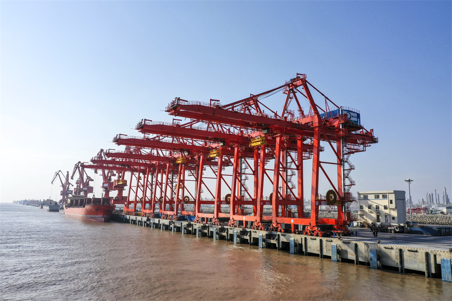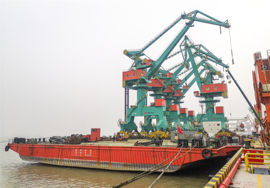 六月的风吹向舟山群岛好风光——mg冰球突破浙石化项目6台自动化岸边集装箱桥式起重机交付使用,为舟山建设贡献力量;